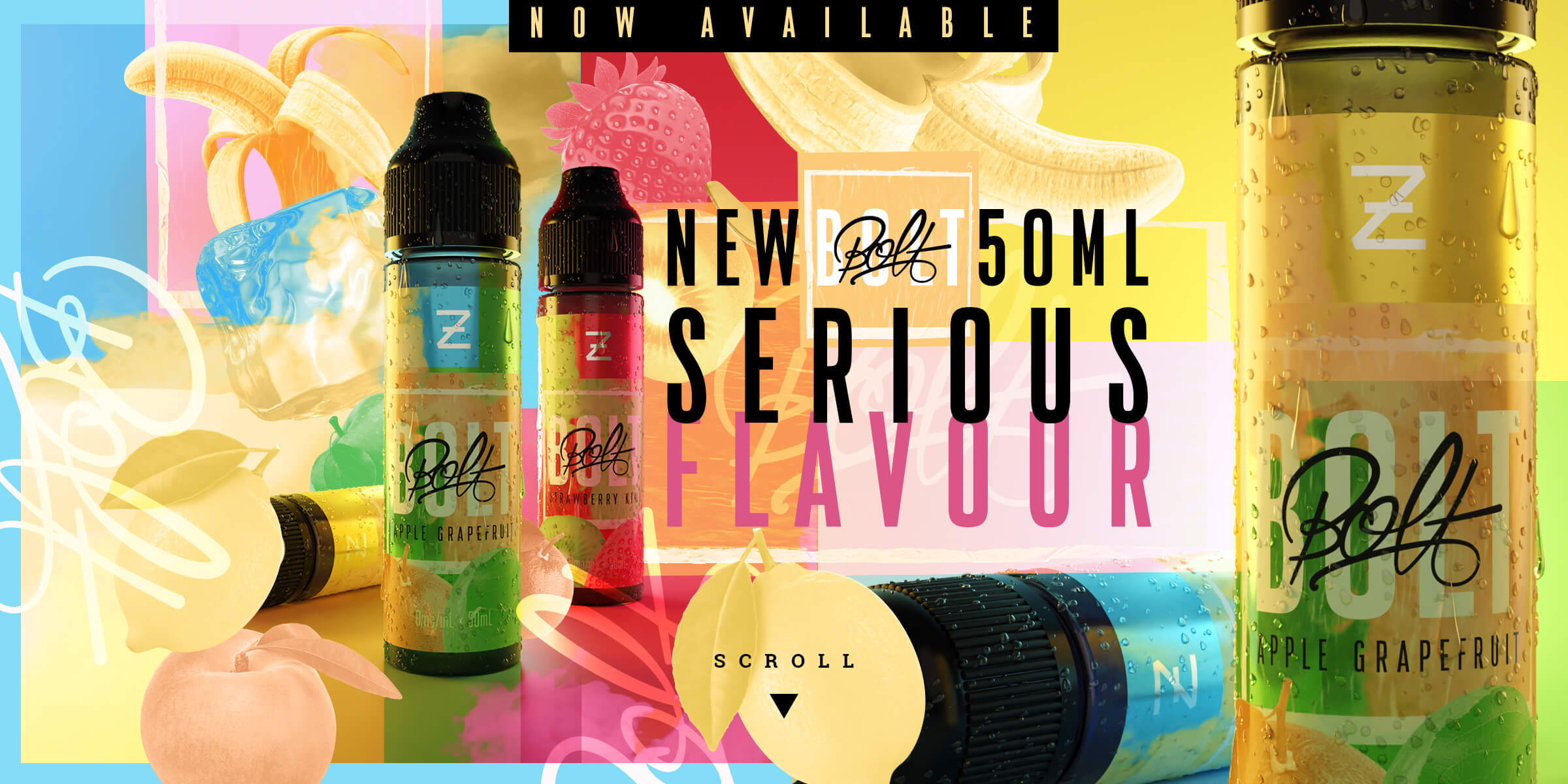 Retailing at £2.99 for a 10ml, £8.99 for a 50ml and £14.99 for a 100ml, BOLT combines premium ingredients and dynamic flavour combinations with an artistic influence. Featuring 10 e-liquid flavours, the BOLT collection harnesses the tastes of much-loved drinks and desserts such as Strawberry Shortcake, Bubbly Blackcurrant and Cherry Cola.