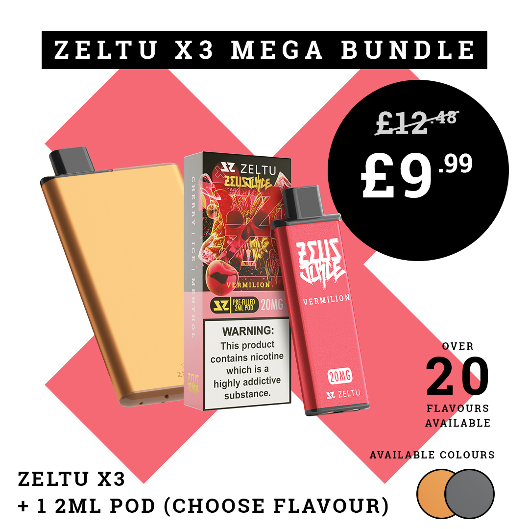 - Compatible with Zeltu X3 prefilled 2ml pods (sold separately).